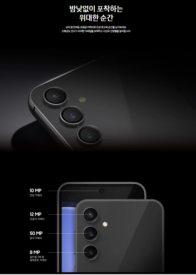 갤럭시S23 FE는 고화소 카메라와 다양한 사진 촬영 모드를 지원하여 탁월한 사진과 영상을 촬영할 수 있습니다.